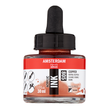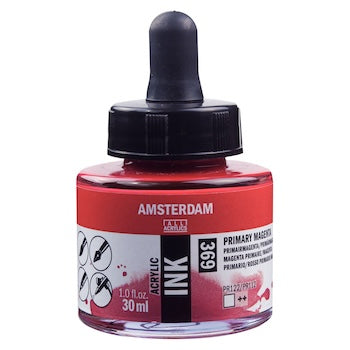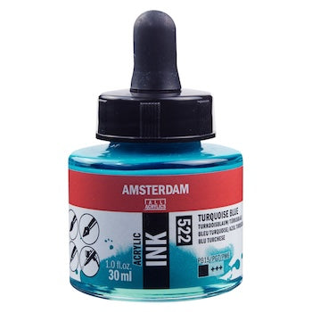 Amsterdam Acrylic inks are versatile fluid acrylic inks, matching the same color system as Amsterdam Standard Acrylic paint and paint markers. These inks are ideal for brushwork, airbrush, pen work, and are fully compatible with Amsterdam's extensive range of mediums.